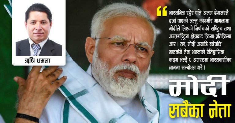 मोदीले पहिलो कार्यकालमा नोट बन्दीको निर्णय लिएका थिए । निकै जोखिमपूर्ण निर्णय लिएर सफलता हासिल गरिछाडे । प्रतिपक्षीको घोर विरोधको सामना गरे । पाकिस्तानको अचानक भ्रमण गरेर तत्कालीन प्रधानमन्त्री नवाज सरिफलाई लाहोरमा भेटे । आश्चर्यजनक कदम चाल्ने शैली देखाइरहे । यसपटक काश्मीरको मामलामा उनले लिएको निर्णयले कतिपयलाई आश्चर्यमा पा¥योे । विपक्षी कांग्रेस आईलगायत केहीले विरोध गरे । तर, कांग्रेस आईकै वरिष्ठ नेता करण सिंह र उनका छोरा विक्रमादित्य सिंहले समर्थन गरे । विरोधीको पनि समर्थन पाउने कदम चाल्न सक्ने खुबी मोदीमा देखिएको छ ।