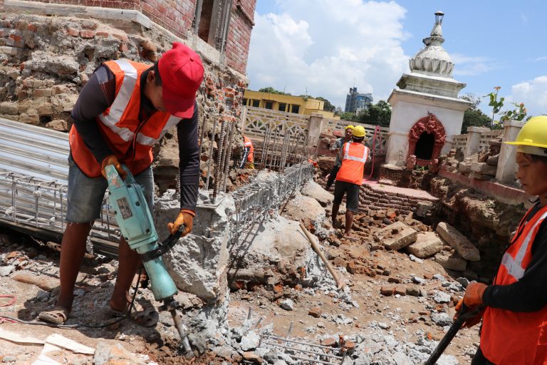 सीए÷तुलसी कन्ट्रक्सन जेभीका साइट इञ्जिनियर सनम श्रेष्ठले हाल दैनिक ३० देखि ३५ श्रमिकहरुले काम गरिरहेको जानकारी दिए । उनकाअनुसार क्षमापूजा गरेपछि मुख्य मन्दिरको पुनर्निर्माण गरिनेछ । श्रेष्ठका अनुसार कामलाई गति दिन मूल मन्दिर र पुलको काम समानान्तर रुपमा अघि बढाइनेछ ।