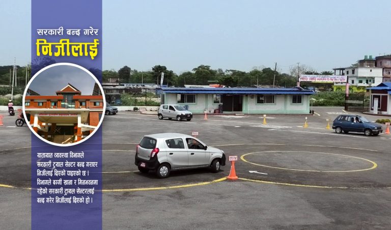 यातायात व्यवस्था विभागले सरकारी ट्रयाल सेन्टर बन्द गराएर निजीलाई दिएको पाइएको छ । विभागले बग्गी खाना र मिनभवनमा रहेको सरकारी ट्रायल सेन्टरलाई बन्द गरेर निजीलाई दिएको हो । सर्वोच्च अदालतले निजीलाई दिएको ट्रायल सेन्टर निःशुल्क गराउन दिएको अन्तरिम आदेशलाई अवज्ञा र अवहेलना गर्दै यातायात व्यवस्था कार्यालय जगाती र ठूलो भर्याङले सःशुल्क बनाएका हुन् ।