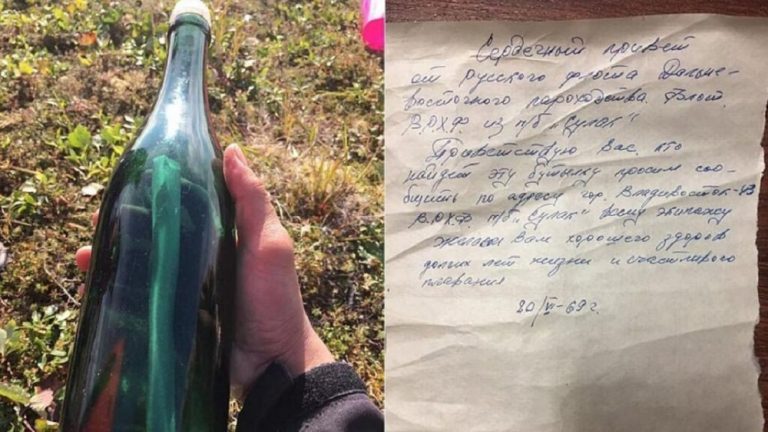त्यसमा रुसी भाषामा लेखिएको पत्र भेटियो । टायलर इभानोफ नामका ती व्यक्तिले रुसी भाषामा लेखिएको चिठ्ठी भेट्टाएपछि आफ्नो फेसबुक पेजमा अनुवादको लागि अपील गर्दै ५ अगष्टमा पोष्ट गरे । यो पत्र २० जून १९६९ मा रूसी जहाज सुलकमा जहाजका नाविकद्वारा लेखिएको थियो ।