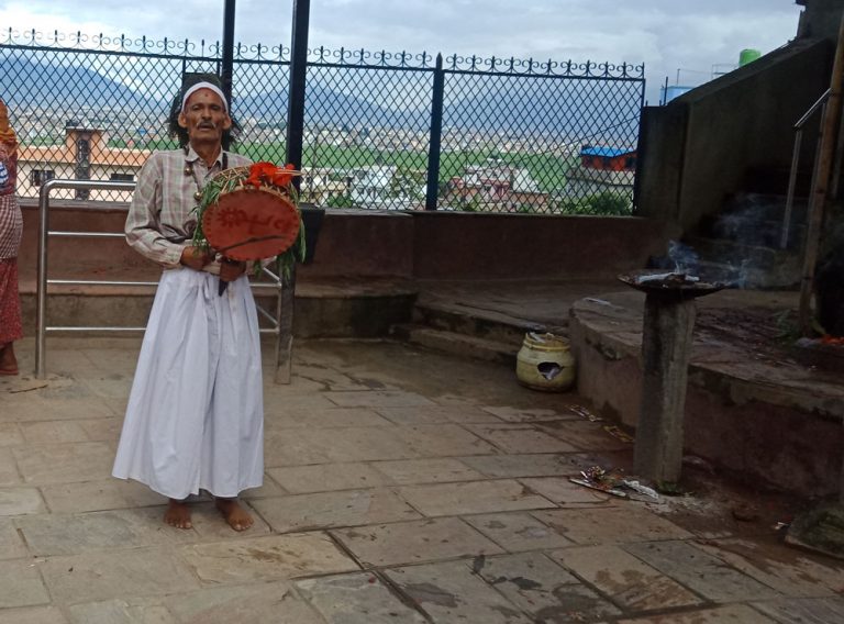 काठमाडौं । ६९ वर्षीय सेते विश्वकर्माले ढ्याङ्रो ठोक्न थालेको ५४ वर्ष पूरा भयो । उनका बाबुले पनि ढ्याङग्रो ठोक्थे । बाबु जिवितै हुँदा उनलाई सिकाए । हरेक वर्ष जनै पूर्णिमाको दिन गाउँबाट ढ्याङ्ग्रो ठोक्दै निस्कन्छन् सेते दाई ।