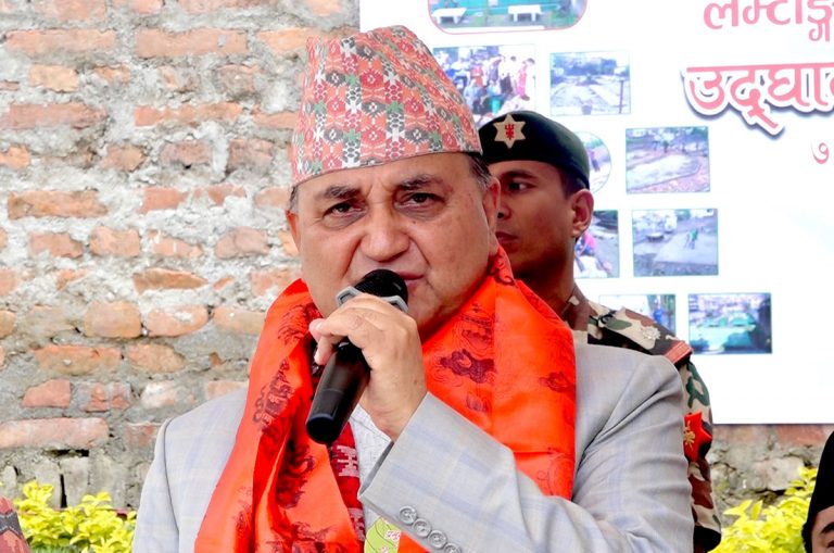 काठमाण्डौ महानगरपालिकाका मेयर विद्यासुन्दर शाक्यले भुकम्पले क्षतिग्रस्त बनेका सम्पदाहरुको पुननिर्माणको कामले गति लिएको भन्दै सहयोग र सहकार्यमा सहभागी हुन नगरबासीलाई आग्रह गरे। तस्विर : मुकुन्द कालिकोटे/रिपोर्टर्स नेपाल डटकम