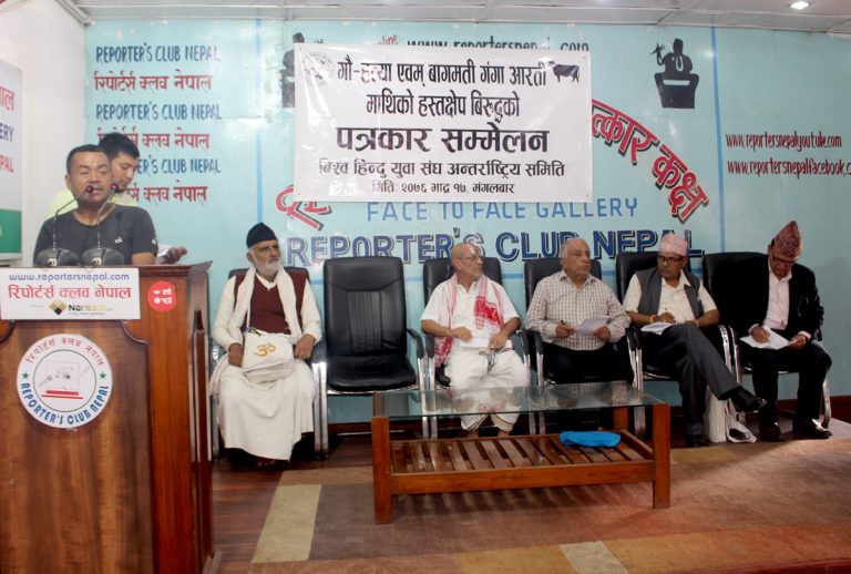 विश्व हिन्दू महासंघ नेपाल राष्ट्रिय समिति, बाँसबारीका उपसभापति तथा पूर्वमन्त्री दिनबन्धु अर्यालले गौमाताको संरक्षण गर्न नसक्ने सरकारले उल्टै गौमातको सुनियोजित हत्या गर्ने गरेको आरोप लगाए । उनले सरकारको यस्तो गलत कार्यको आफूहरुले निन्दा गरेको पनि सुनाए । त्यस्तै, उनले बाग्मती गंगा आरतीमा सरकारी हस्तक्षेप भएको भन्दै आपत्ति जनाए ।