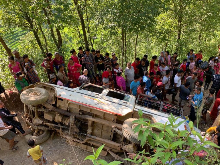 काठमाडौं, १७ भदौ । धादिङबेशीबाट पात्ले जाँदै गरेको जीप दुर्घटना भएको छ। दुर्घट्नामा परी दर्जनौं घाईते भएको समाचार बाहिर आएको छ । नविन ढुंगानाले फेशबुकमा पोष्ट गरेअनुसार दुर्घट्नामा परी घाईते भएकाहरुको अहिले जिल्ला अस्पताल धादिङमा उपचार भैरहेको छ ।