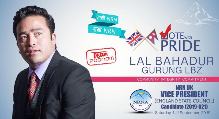 एनआरएन बेलायतको अध्यक्षका उम्मेदवार पुनम गुरुङलाई साथ दिँदै उनले उपाध्यक्षमा उम्मेदवारी घोषणा गरेका हुन् ।