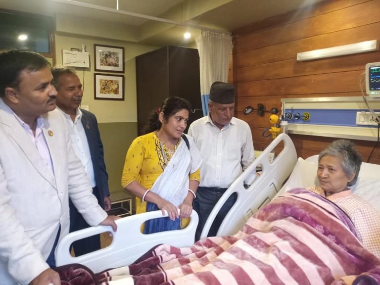 यमीलाई भेट्न साँझ नै समाजवादी पार्टीका नेताहरु अस्पताल पुगेका छन् । तस्बिरः फेसबुक