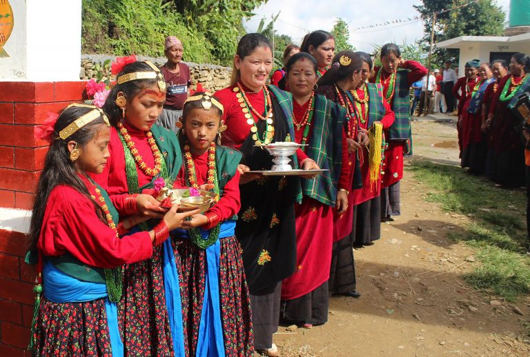 तनहुँको भानु नगरपालिका–१३ स्थित बाँसपानीमा पाहुनाको स्वागतका लागि बसेका स्थानीय महिला । गुरुङ समुदायको बाहुल्यता रहेको यस ठाउँका स्थानीयवासी घरबास सञ्चालनमा जुटेका छन् ।