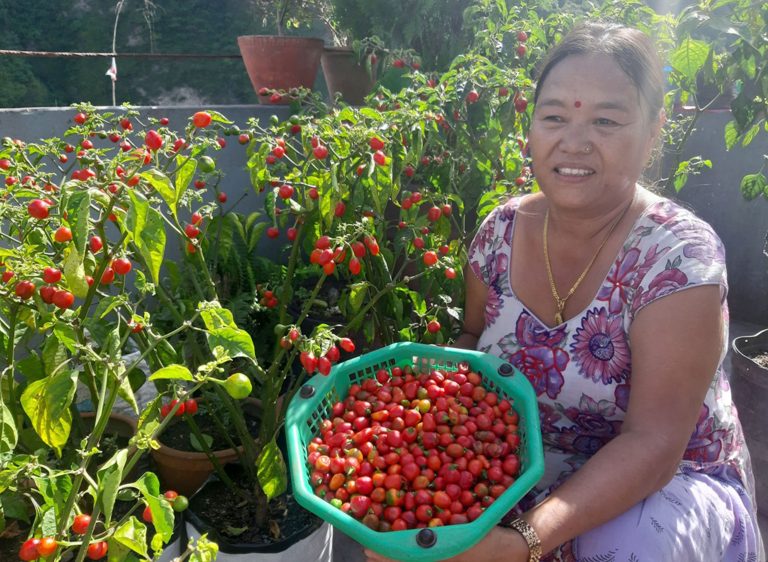म्याग्दीको सदरमुकाम बेनी बजारस्थित इन्द्रणी टोलमा पूर्ण राम्जालीले घरको छतमा फलाएको अकवरे खुर्सानी । पछिल्लो समय इन्द्रणी टोलमा कौशीखेतीतर्फ आकर्षण बढेको छ ।