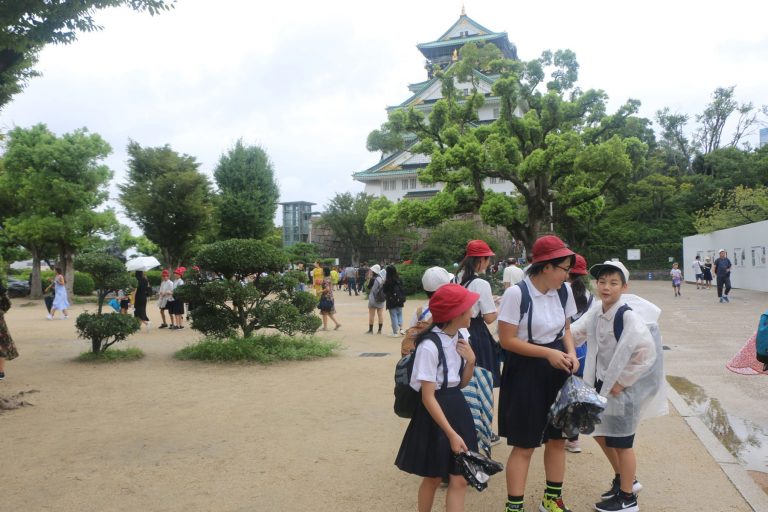 जापानको ओसाकास्थित ऐतिहासिक दरबार ‘ओसाका क्यास्टल’ भ्रमण गर्दै जापानी विद्यार्थी ।