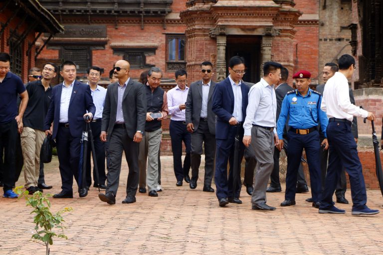 नेपाल भ्रमणमा रहनुभएका चिनियाँ विदेशमन्त्री वाङ यी मङ्गलबार भक्तपुर दरबार क्षेत्रको अवलोकन गर्दै । तस्वीर ः नवीन पौडेल