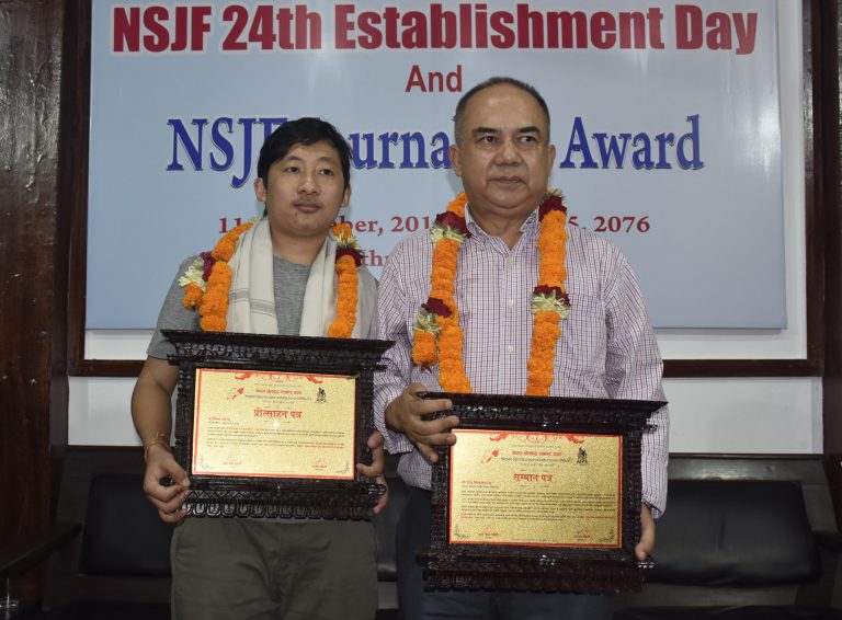 खेल पत्रकारितामा पुर्याएको योगदानको कदर गर्दै मञ्चले एनएसजेएफ पत्रकारिता पुरस्कारबाट नेपाल टेलिभिजनमा कार्यरत सिलवाल र खेलपाटी डटकममा कार्यरत राईलाई प्रोत्साहनस्वरुप सम्मान गरेको बताएको छ । युवा खेलकुद पत्रकारिता पुरस्कार गत वर्षदेखि थप गरिएको हो ।