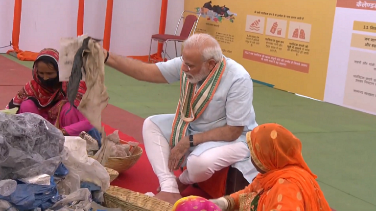 बुधबार मथुरामा पुगेका मोदीले महिलाहरुसँग प्लाष्टिक छुट्याउने कामबारे कुरा गर्दै काम गरे । उनले प्लाष्टिक छुट्याएको दृश्य र भिडियो चर्चामा छ । सामान्य परिवारमा जन्मिएका मोदी ‘स्वच्छ भारत’ अभियानलाई जोडबल दिइरहेका छन् । उनको उद्देश्य शहर र गाउँ सफासुग्घर राख्ने रहेको छ । गंगा सफाई अभियानमा मोदी लागेका छन् । उनले आफूले पाएको उपहार लिलामी गरी गंगा सफाई अभियानलाई दिने भएका छन् ।
