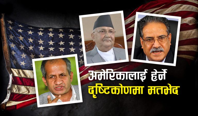 समाचार विश्लेषण । नेपाल कम्युनिष्ट पार्टीभित्र संयुक्त राज्य अमेरिकालाई हेर्ने दृष्टिकोणमा स्पष्ट मतभेद देखिएको छ । अमेरिकाको इन्डो प्यासिफिक रणनीतिविरुद्ध अध्यक्ष प्रचण्ड स्पष्ट रुपमा उभिएका छन् भने प्रधानमन्त्री समेत रहेका अर्का अध्यक्ष केपी शर्मा ओली मौन छन् । उनको मौनतालाई समर्थनको रुपमा लिइएको छ ।
