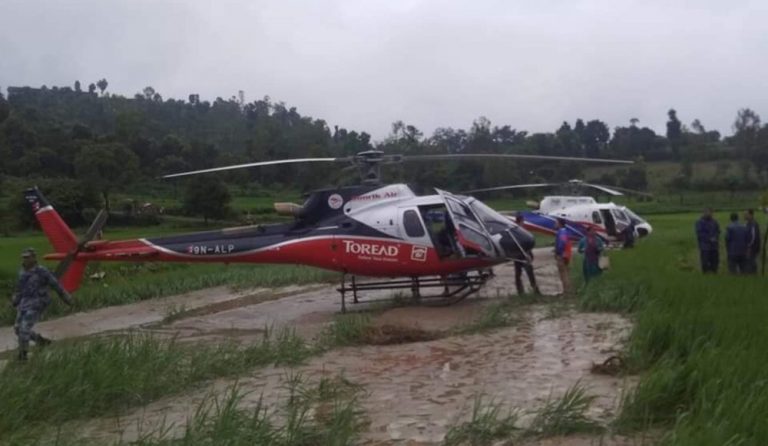 जोरपाटी र हर्सेमा अवतरण गरिएका हेलिकोप्टरमध्ये दुईका चालक दल नेपाली र दुईका विदेशी रहेका वडाध्यक्ष खतिवडाले बताए । हेलिकोप्टर धानखेतमा अवतरण गरिएको छ ।