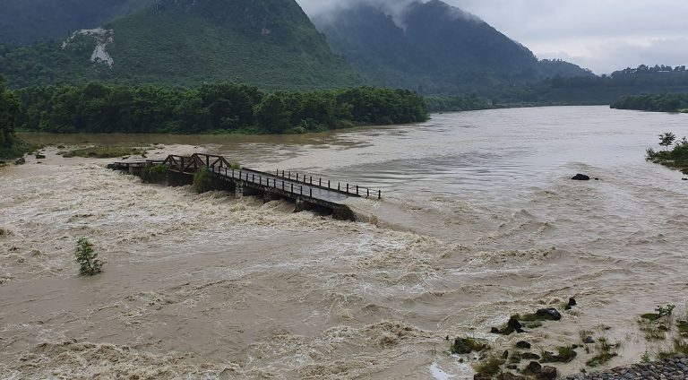 सोमबार रातिदेखि परेको निरन्तर वर्षाले डुबानमा परेको तनहुँको शुक्लागण्डकी नगरपालिका–४ र ८ जोड्ने सेतीनदीमाथिको पुल । सेतीनदीले पुल डुबाएसँगै उक्त पुल जोखिममा परेको छ ।