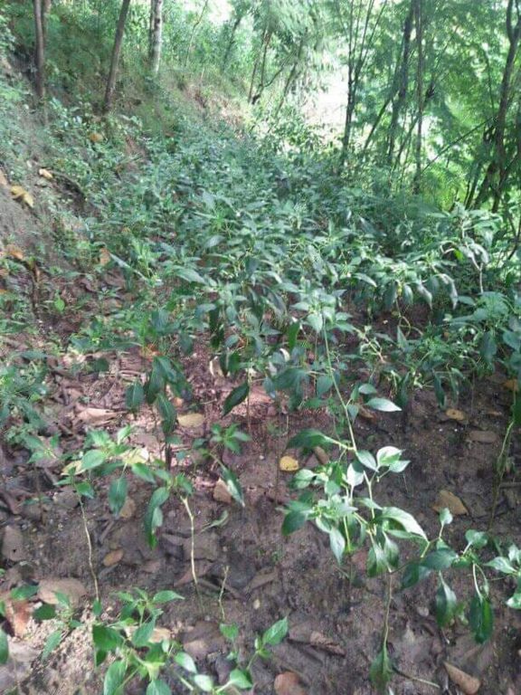 केआईसिंह गाउँपालिका– ५ रानागाउँका किसानले लगाएका ज्यानमारा भन्ने खुर्सानीका बिरुवा । गाउँपालिकाको आर्थिक सहयोगमा त्यहाँका किसानले अतिनै पिरो हुने ज्यानमारा खुर्सानीको खेती गर्दै आएका छन् ।