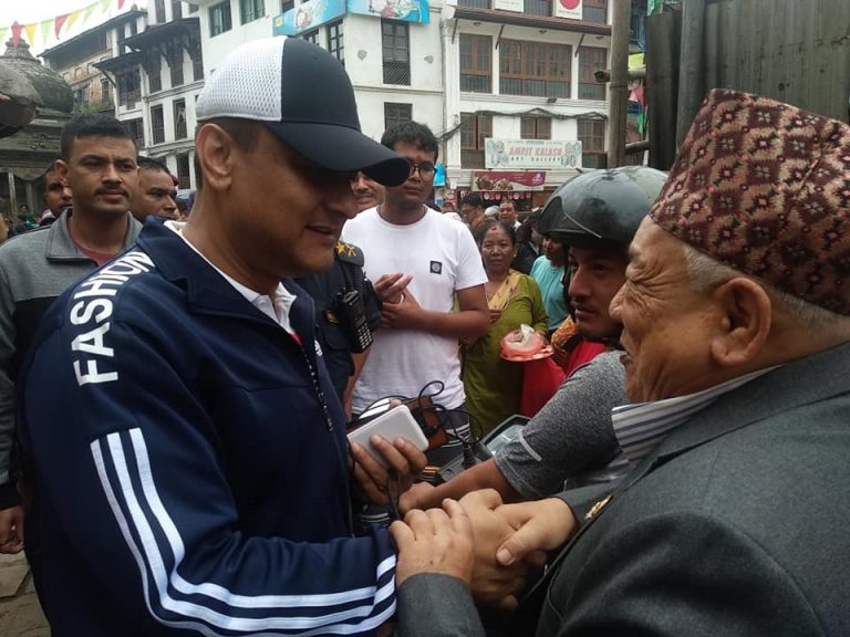 काठमडौं, १ असोज । इन्द्रजात्राको शुरुको दिन आइजीपी सर्वेन्द्र खनाल वसन्तपुर पुगे । उनी प्रहरी पोशाकमा थिएनन् । ट्रयाकसुटमा पुगेका खनालले स्थानीयसँग पनि भलाकुसारी गरे । बुढापाकाहरुसँग नेवारीमै कुरा गरे । आफ्नो भाषामा आइजीपीले कुराकानी गरेपछि स्थानीय खुशी भएका थिए ।