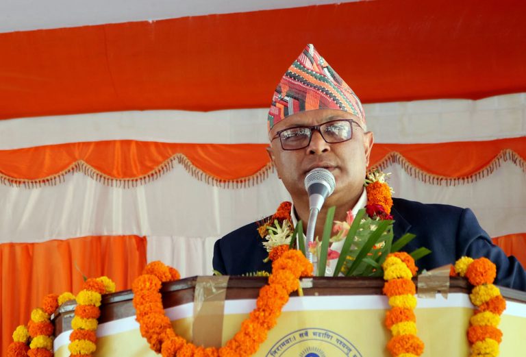 देश नं १ का आन्तरिक मामिला तथा कानूनमन्त्री हिक्मतकुमार कार्की गोरखापत्र पूर्वक्षेत्र विराटनगर प्रकाशनको बिहीबार शुभारम्भ र भवन उद्घाटन कार्यक्रममा मन्तव्य व्यक्त गर्दै ।