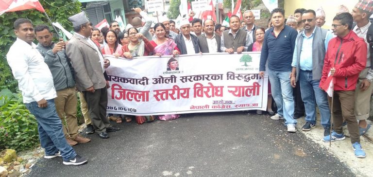काँग्रेस पार्टी कार्यालय स्याङ्जाबाट शुरु भएको सरकार बिरोधी ¥यालीले जिल्ला सदरमुकामका अभियानपथ, चौकीबजार, हुलाकरोड, शहिदचोक, मालपोतलाईन, ठाडोलाईन र बैंकरोड हुँदै पुनः शहिदचोक पुगेर भएको कोणसभामा बोल्ने नेताहरुले विश्वका कम्यूनिष्ट सरकार जस्तै ओली नेतृत्वको सरकार हरेक क्षेत्रमा असफल बनेको बताए ।