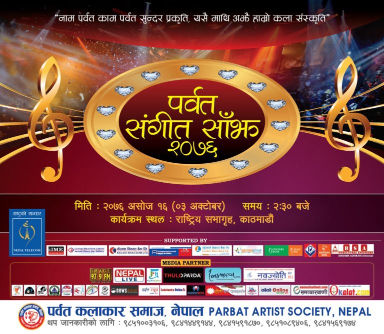 पर्वत कलाकार समाज नेपालले राजधानीमा भव्य सांगीतिक कार्यक्रम आयोजना गर्ने भएको छ । काठमाडौंको राष्ट्रिय सभागृहमा विजय दशमी २०७६ को अवसरमा “पर्वत संगीत साँझ” को आयोजना हुने भएको हो । यो संगठन पर्वत जिल्लाका कलाकारहरुको साझा संगठन हो ।
