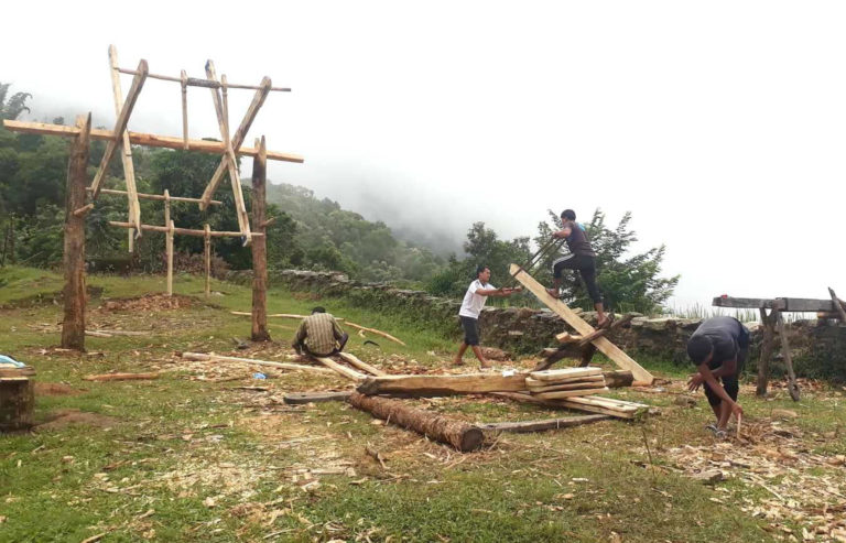 बेँसीशहर नगरपालिका– ३ गाउँशहरस्थित काउलेपानीमा रोटेपिङ निर्माणका लागि स्थानीयहरुले बुधबार परम्परागत रुपमा आरोबाट काठ चिर्दै । पिङ संस्कृति जोगाउनका लागि स्थानीय सयपत्री मिलन समूहमा आबद्धमध्ये ११ जना युवा मिलेर रु ६० हजार रुपैयाँमा रोटेपिङ निर्माण गर्न लागेका छन् । तस्बिर:जनक श्रेष्ठ