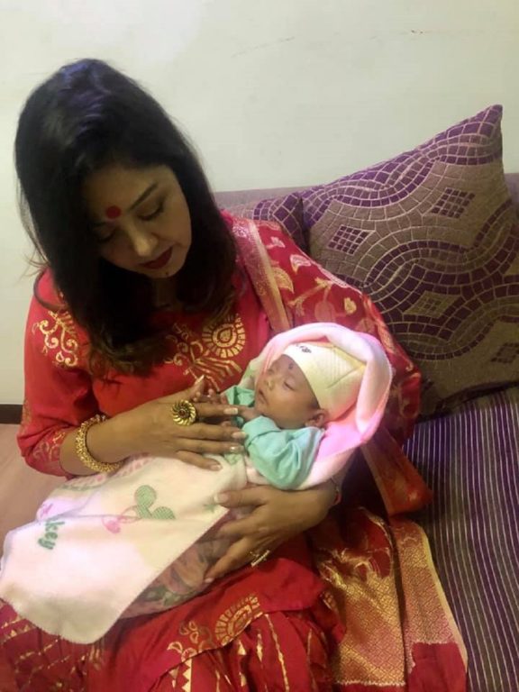 काठमाडौं, १८ असोज । रातो पहिरन अनि भावुकता । चलचित्र नायिका करिश्मा मानन्धर काखमा नवजात शिशु लिएर बसेकी छिन् । शिशु निदाएको अवस्थामा छ । लाग्छ यो करिश्माको आफ्नै बच्चा हो ।