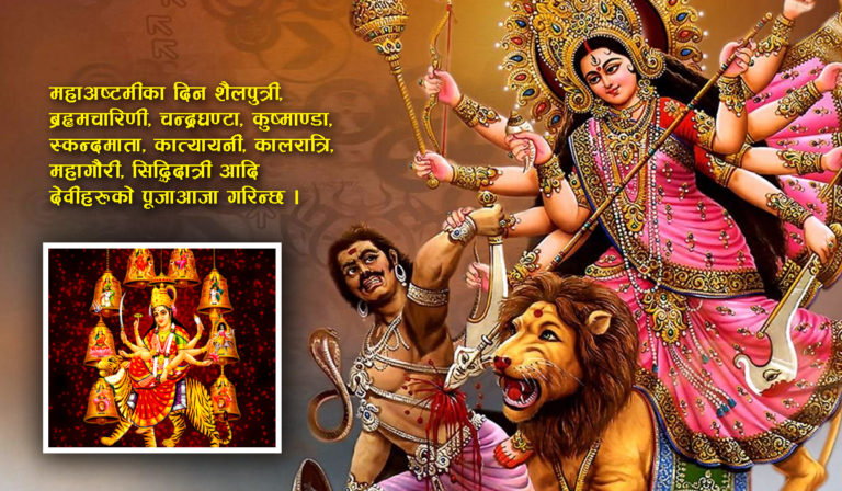 महाअष्टमीका दिन शैलपुत्री, ब्रहृमचारिणी, चन्द्रघण्टा, कुष्माण्डा, स्कन्दमाता, कात्यायनी, कालरात्रि, महागौरी, सिद्धिदात्री आदि देवीहरूको पूजाआजा गरिन्छ ।