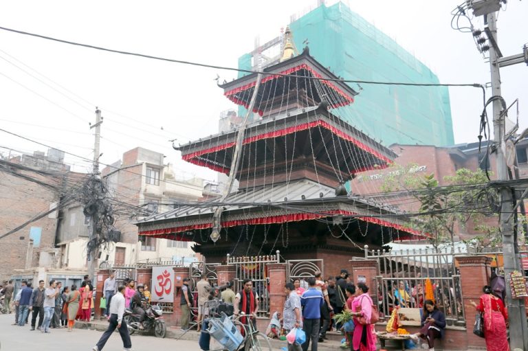 काठमाडौँ,२० असोज : काठमाडौँको नक्साल भगवती मन्दिरमा दर्शन गर्न भक्तजनको भीड । तस्वीर : चन्द्रकला क्षेत्री