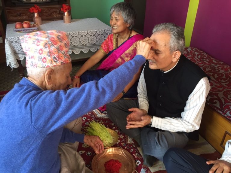 काठमाडौं, २१ असोज । पूर्व प्रधानमन्त्री एवं समाजवादी पार्टी नेपालका अध्यक्ष डा.बाबुराम भट्टराईले ९० वर्षीय पिताका हातबाट टीका लगाएका छन् । उनले पत्नी हिसिला यमीसँगै बसेर पिताको हातबाट टीका लगाएका हुन् ।