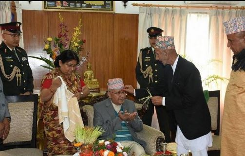 प्रधानमन्त्री ओलीले धर्मपत्नी राधिका शाक्य, परिवारजन, उपस्थित उपप्रधानमन्त्री, मन्त्रीगण तथा नेता कार्यकर्ता, कर्मचारी र सुरक्षाकर्मीलाई पनि टीका लगाए ।