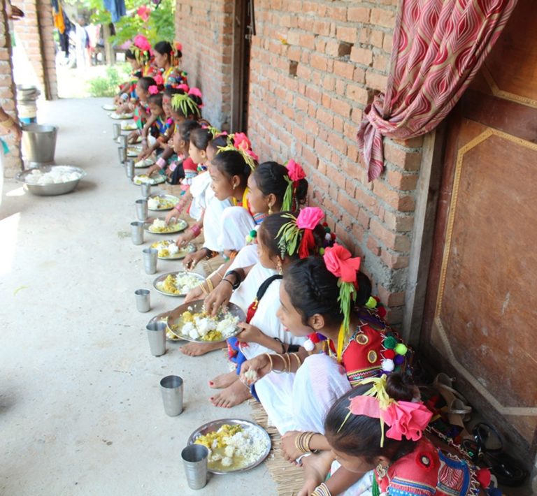 कञ्चनपुर, २२ असोज : कञ्चनपुरको शुक्लाफाँटा नगरपालिका ३ जोनापुरमा दशैंका अवसरमा बुधवार थारु समुदायका गुरुवाले आयोजना गरेको भोजमा खाना खादै सखिया नृत्य टोलीका सहभागी । तस्वीर : राजेन्द्रप्रसाद पनेरु