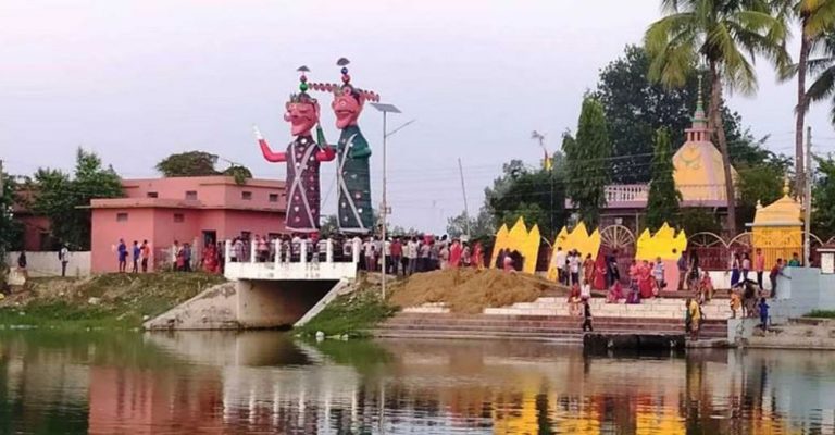 धनुषा, २२ असोज : असत्यमाथि विजय प्राप्त गरेको खुसीयालीमा जनकपुरमा विजया दशमीको अन्तिम दिन मंगलबार रावणवध कार्यक्रमका लागि बनाएको रावणस्वरुपी प्रतिमा । तस्वीर : जयकुमार साह