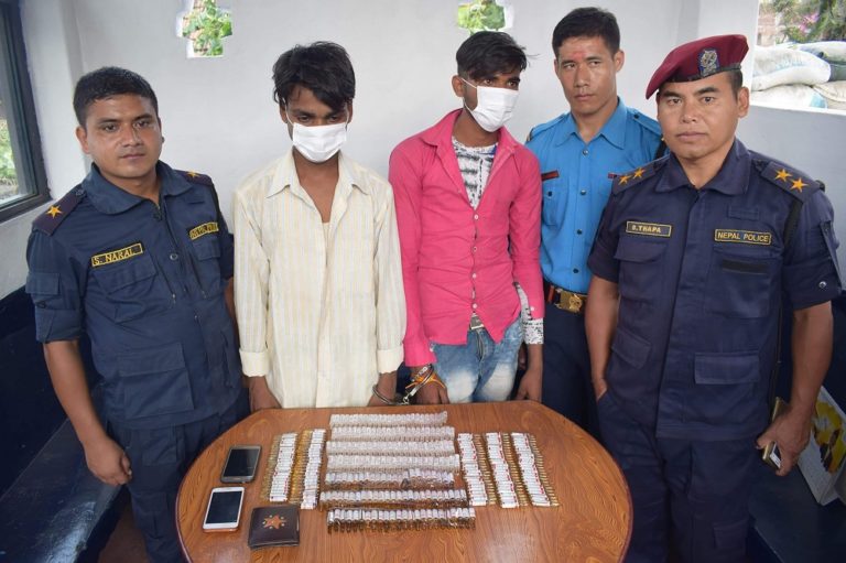 दमौली, २३ असोज : तनहुँको आँबुखैरेनी गाउँपालिका–३ स्थित लागुऔषध सहित पक्राउ परेका कपिलवस्तु शुद्धोधन गाउँपालिका–६ बस्ने २० वर्षीय शिवप्रसाद चमार र १८ वर्षीय रामकिसुन लोदलाई सार्वजनिक गर्दै प्रहरी । निजहरुको साथबाट ३०० थान लागुऔषध बरामद गरेको छ ।