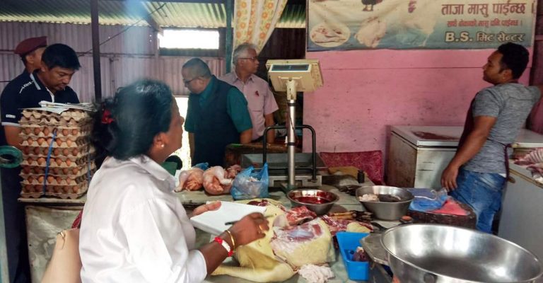 बजारमा मासुको मूल्य वृद्धि भएको उपभोक्ताको गुनासो आएपछि अनुगमन गर्न निस्किएको संयुक्त बजार अनुगमन टोलीले मासु पसलको मूल्यसूचि अद्यावधिक नगरेको, नापतौल यन्त्र नापतौल कार्यालयबाट प्रमाणित नगराएको भेटिएकाले तत्काल सच्चिन निर्देशन दिइएको प्रमुख पौडेलले बताए ।