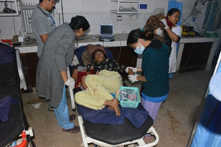 काभ्रेपलाञ्चोक,२५ असोज : काभ्रेपलाञ्चोकको महाभारत गाउँपालिका २ बाट बनेपातर्फ आउँदै गरेको निसान गाडी रोशी गाउँपालिका ३ साँझाकोटमा शुक्रवार बेलुका दुर्घटना हुँदा घाईते भएकाहरुको बनेपास्थित शिर मेमोरियल अस्पतालमा उपचारको लागी एम्बुलेन्सबाट निकाल्दै ।