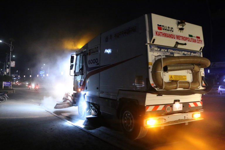ब्रुमर त्रिभुवन विमानस्थलको सडक देखि तीनकुने, बानेश्वर, माइतीघर, त्रिपुरेश्वर, सोल्टीमोड, रत्नपार्क, लाजिम्पाटलगायतका स्थानको मुख्य सडकमा ब्रुमर चलाइएको हो । सडक पानीले समते पखालिएको छ ।