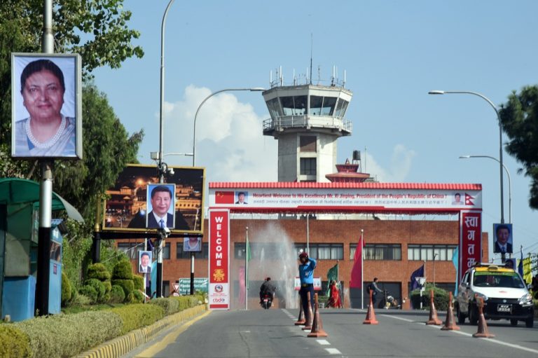 काठमाडौँ, २५ असोज : चिनियाँ राष्ट्रपति सी चिनफिङको भ्रमणका अवसरमा सजाइएको त्रिभुवन अन्तरराष्ट्रिय विमानस्थल । त्रिभुवन अन्तरराष्ट्रिय विमानस्थलमा विभिन्न भेषभूषामा सजिएका विद्यार्थी र स्वागतका लागि विभिन्न भेषभूषामा सजिएका स्थानीयवासी ।