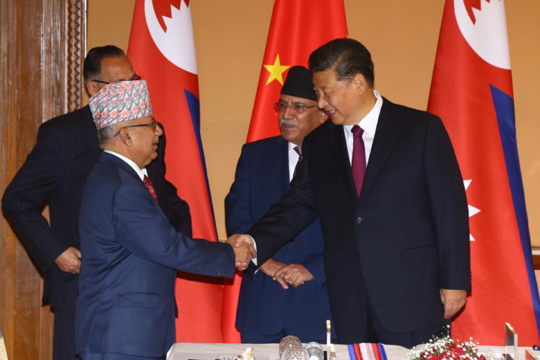 काठमाडौं, २६ असोज । नेपालको दुई दिने राजकीय भ्रमणका लागि हिजो (शनिबार) नेपाल आएका चिनियाँ राष्ट्रपति सी चिनफिङ र प्रमुख सत्तारुढ दल नेपाल कम्युनिष्ट पार्टी (नेकपा) का सचिवालय सदस्यहरुसँग सामूहिक भेटवार्ता सम्पन्न भएको छ ।