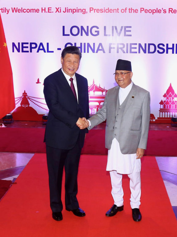काठमाडौं, २६ असोज । नेपालको दुई दिने राजकीय भ्रमणमा नेपालमा रहेका चिनियाँ राष्ट्रपति सी जिनफिङ र प्रधानमन्त्री केपी शर्मा ओलीबीच शिष्टाचार भेटवार्ता भएको छ । तस्वीर : प्रदीपराज वन्त