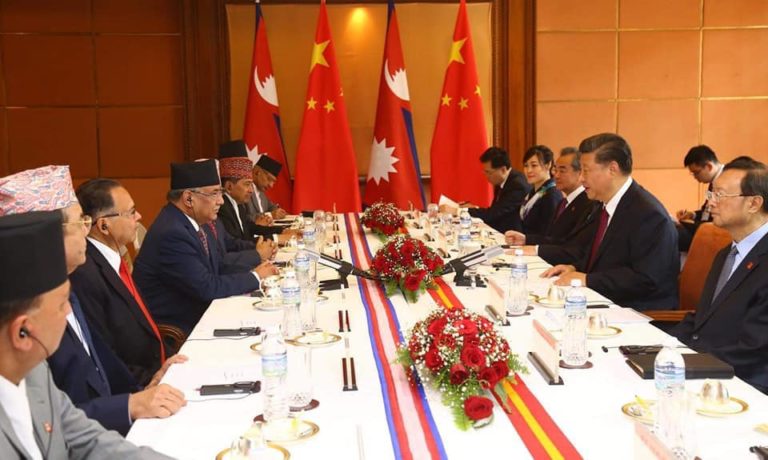 काठमाडौं, २६ असोज । नेपालको दुई दिने राजकीय भ्रमणमा रहेका चिनियाँ राष्ट्रपति सी जिनफिङ र सत्तारुढ दल नेपाल कम्युनिष्ट पार्टी (नेकपा) का नेताहरुबीचको भेटवार्तामा सीले नेपालले जुन राजनीतिक उपलब्धी र स्थायित्व हासिल गरेको छ र विकासको बाटोमा हिँड्न खोजेको छ त्यसका लागि बधाई दिएका छन् ।