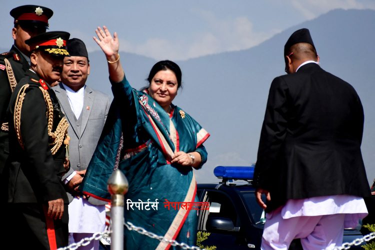 राष्ट्रपति भने यो पटक स्थलमार्ग नभई हवाई मार्ग हुँदै विमानस्थल पुग्नेछिन् । उनी केही बेरमै शितलनिवासबाट हेलिकोप्टरमार्फत विमानस्थलमा पुग्ने कार्यक्रम छ । स्थलमार्ग हुँदै विमानस्थल जाँदा जनतालाई सास्ती हुने देखेर राष्ट्रपति हेलिकप्टरमार्फत विमानस्थलसम्म जान लागेको शितलनिवास स्रोतले जनाएको छ ।