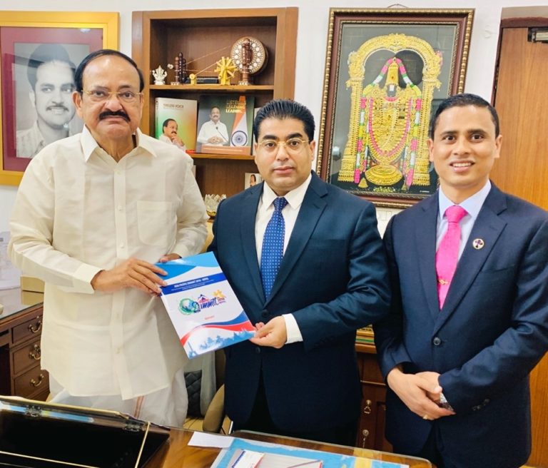 काठमाडौं, ३० असोज । नेपाल परिवार दलका अध्यक्ष एकनाथ ढकाल नेपालका लागि पूर्व भारतीय राजदूत केभी राजन र भारतीय जनता पार्टीका नेता विजय जोलीसँगै गएर भारतीय उपराष्ट्रपति वेंकैया नायडुसँग भेटेका छन् । नयाँ दिल्लीस्थित भारतीय उपराष्ट्रपति कार्यालयमा भएको भेटमा एशिया प्यासिफिक सम्मेलनको प्रतिवेदन हस्तान्तरण गरे ।
