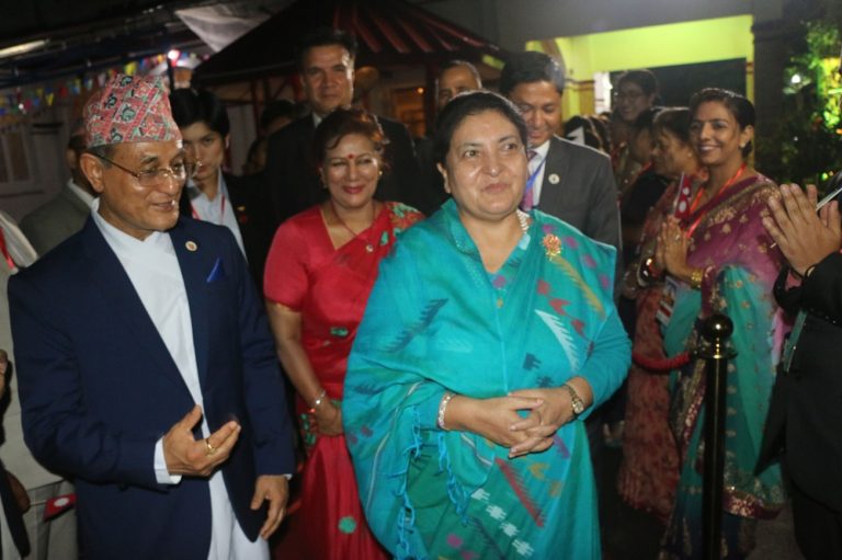 म्यान्मा, २ कात्तिक : म्यान्माका राष्ट्रपति विन मिन्तको मैत्रीपूर्ण निमन्त्रणामा यही असोज २९ गतेदेखि म्यान्माको राजकीय भ्रमणमा रहनुभएका राष्ट्रपति विद्यादेवी भण्डारीलाई यङ्गोनस्थित नेपाली राजदूतावासमा स्वागत पछि सामूहिक तस्वीरमा ।