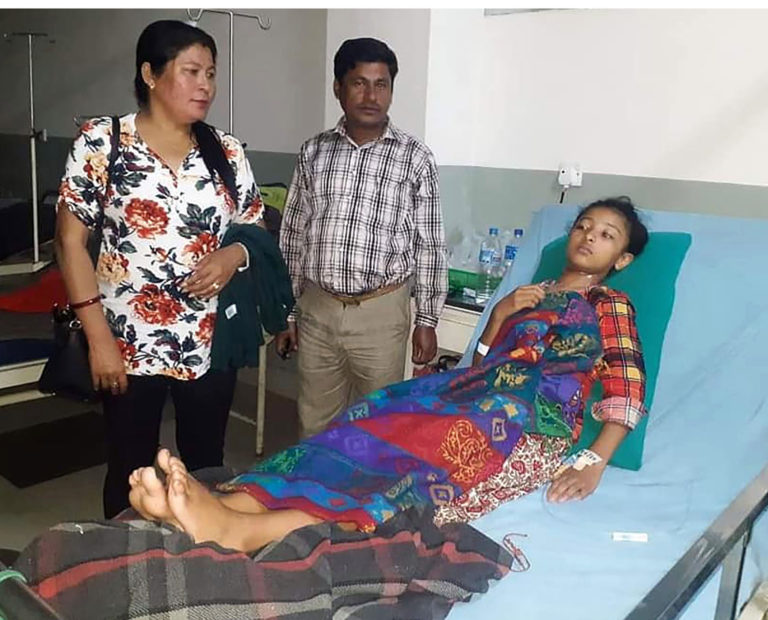 तस्वीर : घाइते बालिकाको अवस्था बुझ्दै उपप्रमुख थापा