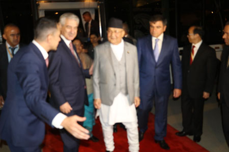 बाकुस्थित हेयदार अलियेभ अन्तर्राष्ट्रिय विमानस्थलमा प्रधानमन्त्री ओली र प्रतिनिधिमण्डलका सदस्यहरुलाई अजरबैजानका उपप्रधानमन्त्री अली अहमादोभ, उपविदेश मन्त्री नादीर हुसेनोभ, परराष्ट्रमन्त्री प्रदीपकुमार ज्ञवाली, न्यूयोर्कस्थित संयुक्त राष्ट्रसङ्घका लागि नेपालका स्थायी प्रतिनिधि अमृत राई र अन्य वरिष्ठ अधिकृतहरुले स्वागत गरेका थिए ।