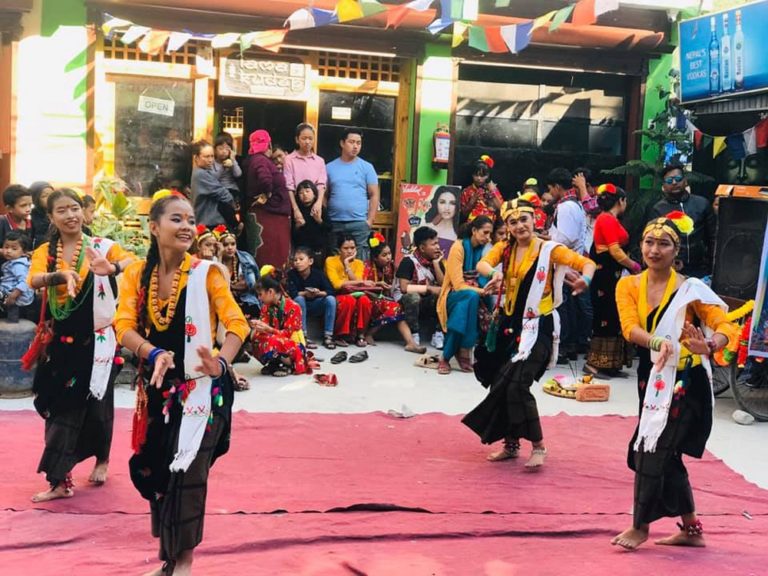 गलेश्वर, १० कात्तिक : म्याग्दीको सदरमुकाम बेनीस्थित बेनी सामुदायिक विद्यालयको शैक्षिक स्तरोन्नतिका लागि अक्षयकोष स्थापना गर्न आयोजना गरेको देउसी भैलोमा नृत्य गर्दै विद्यार्थी साथै तिहारको अवसरमा देउसी भैलोमा नृत्य देखाउँदै कलाकार । विभिन्न समुहले खेलेको देउसी भैलोमा रेकर्ड गरिएका गीतहरुको नृत्यले प्राथमिकता पाएको छ ।