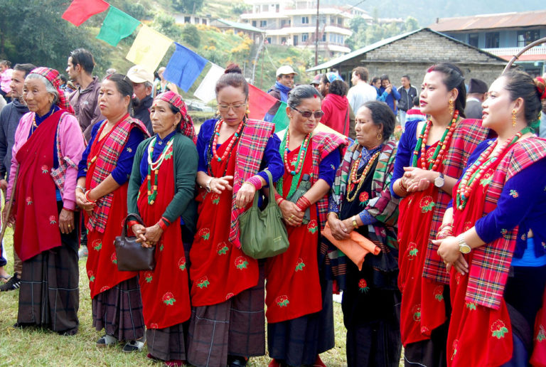 कास्कीको माछापुच्छ«े गाउँपालिका वडा नं ७ स्थित पर्यटकीय धम्पुस गाउँमा आउने आन्तरिक तथा बाह्य पर्यटकलाई स्वागतका लागि मौलिक पोसाकमा सजिदै आमा समूहका सदस्य । तस्वीरःकृष्ण दवाडी