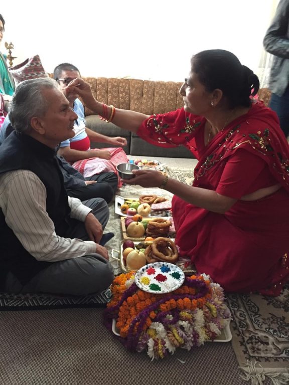 काठमाडौं, १२ कात्तिक । सत्तारुढ दल समाजवादी पार्टी, नेपालका संघीय परिषद अध्यक्ष तथा पूर्व प्रधानमन्त्री डा. बाबुराम भट्टराईले यो वर्षको भाईटिका पनि शुभ साईतमै बहिनी पार्वतीको हातबाट टीका ग्रहण गरेका छन् । उनले टिका ग्रहणलगत्तै आफ्नो फेशबुक पेजमा यस्तो लेखेका छन्,”बहिनी पार्वतीबाट टीका ग्रहण गर्दै तिहार पर्व सम्पन्न१ परिवारका सबैले एक अर्कालाई टीका लगाएर शुभकामना आदानप्रदान !”