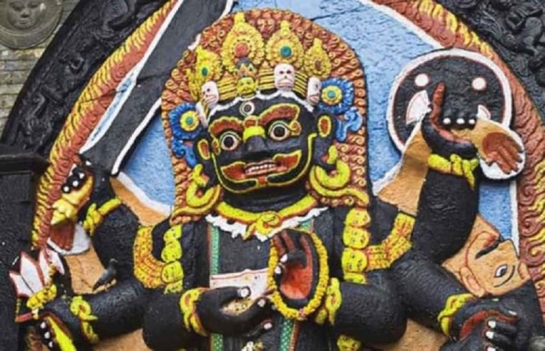 नरमुण्डा माला लगाएको काल भैरवको मूर्तीलाई बेग्लै मन्दिर नबनाएर खुला आकाश मुनि पर्खालमा टसाएर राखिएको हुन्छ । मध्यकालमा कालभैरव मूर्ती अगाडि अपराधीलाई दण्ड सजाय दिने चलन थियो । यसको अगाडि उभ्याएर अपराधीलाई अपराध स्वीकार गर्न लगाइन्थ्यो भने कतिपय अपराधीहरु यहाँ आइपुग्नसाथ डरले आत्मा हत्या गर्ने इतिहासमा भेटिन्छ । यस्तो डर लाग्दो मूर्ती भने आफू हाँसी रहेको छ । भनिन्छ कालभैरवको मूर्ती अगाडि उभिएर काल भैरवको मूर्तीको प्रतिमाको चेहेरा हेर्दा स्वयम हास्ने गरिन्छ । यसको रोचक किंवदन्ती रहेको छ ।