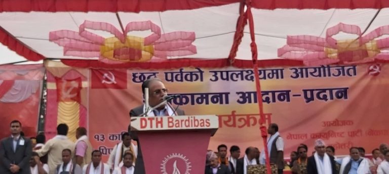 महोत्तरी । नेपाल कम्युनिष्ट पार्टीका अध्यक्ष प्रचण्डले समग्र देशको विकास र समृद्धिमा सम्पूर्णरुपले समर्पित पार्टी कम्युनिष्ट पार्टी नै भएको बताउनुभएको छ । बुधबार महोत्तरीको पिपरामा छठ पर्वको उपलक्ष्यमा आयोजित शुभकामना आदान प्रदान कार्यक्रमलाई सम्बोधन गर्दै उहाँले यस्तो बताउनुभएको हो ।